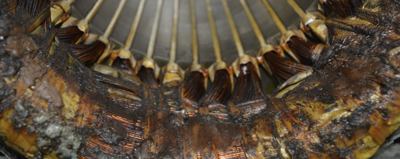 En el caso de los motores, la sobre carga quema poco a poco los devanados del embobinado, como en la siguiente imagen.